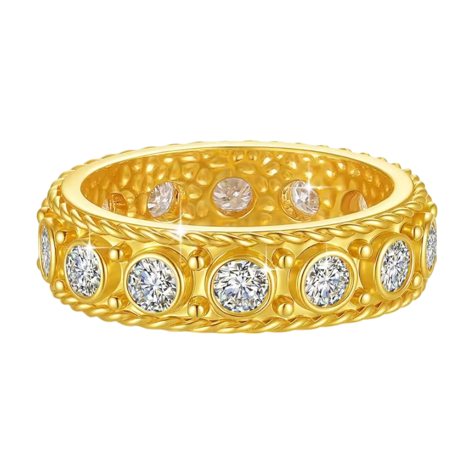 22ct Yellow Gold Ladies Ring with Two Rows of Cubic Zirconia Stones | Ring Size N 1/2 | Elegant Gold Jewellery